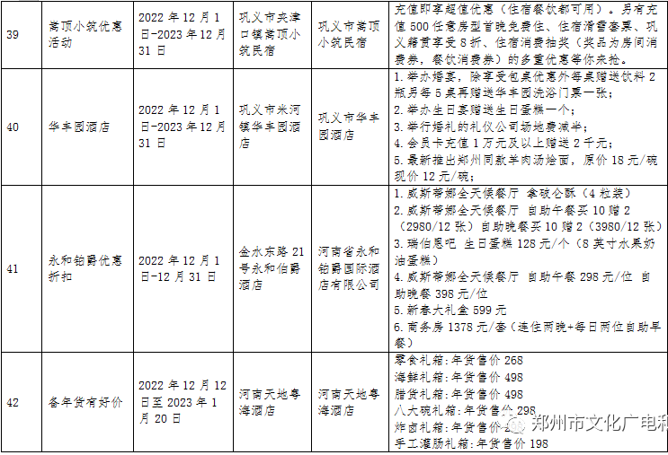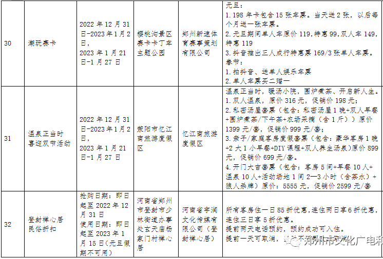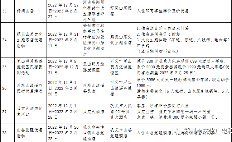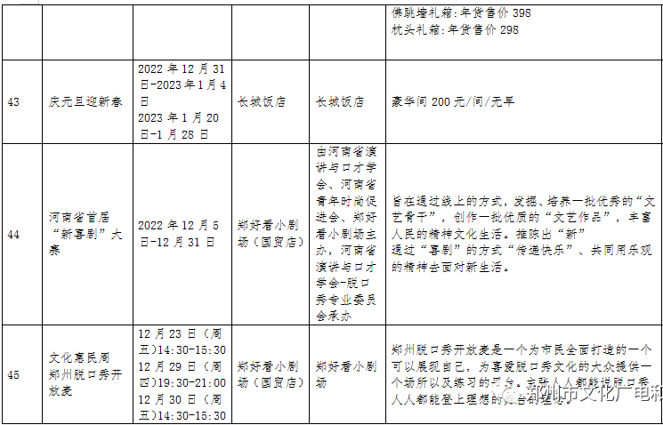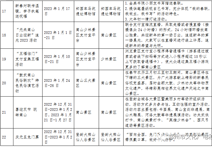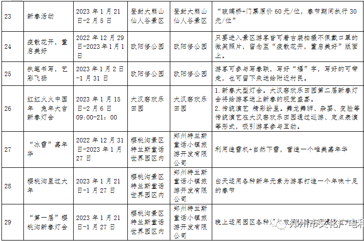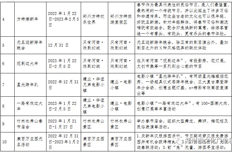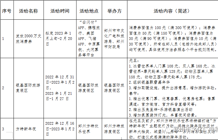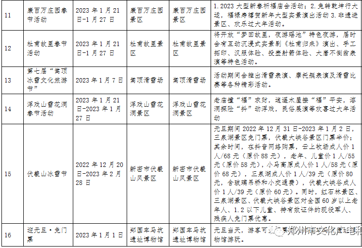 鄭州市喜迎2023年“元旦”“春節(jié)”文旅活動(dòng)和惠民措施統(tǒng)計(jì)表