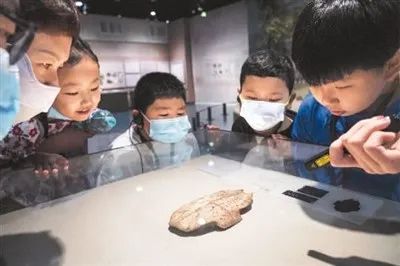 游客在中國(guó)文字博物館內(nèi)觀看展出的卜甲。新華社記者 吳 剛 攝