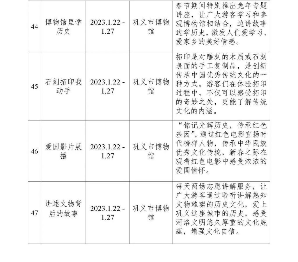 一元復(fù)始,萬象更新。為慶祝雙節(jié)到來,充分發(fā)揮文旅消費(fèi)對經(jīng)濟(jì)增長的拉動作用,全力助推文旅市場回暖,鞏義市文廣旅體局圍繞“約惠鞏義 游樂迎新”“文化惠民 藝暖雙節(jié)”兩大主題,策劃準(zhǔn)備了免門票、民俗表演、非遺研學(xué)等共計47項文旅活動和惠民措施。