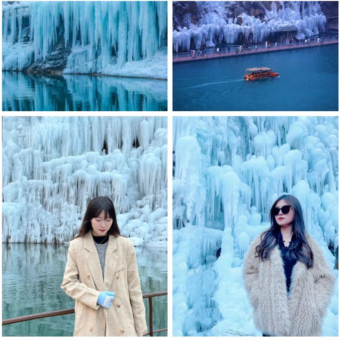數(shù)百米的冰瀑群懸掛在懸崖,坐上小船輕輕從旁邊劃過,生怕驚擾了冰雪精靈的美夢,站在冰瀑下面打卡則是非常出片哦!