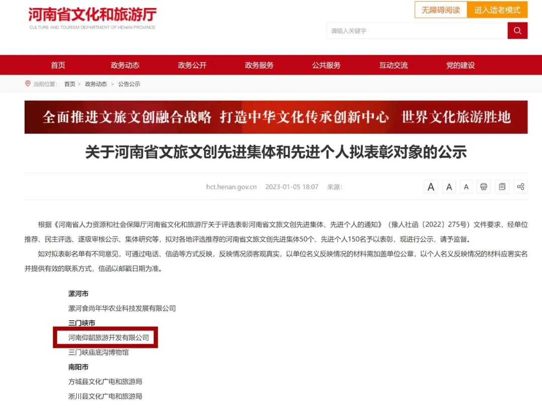 近日,根據(jù)《河南省人力資源和社會(huì)保障廳 河南省文化和旅游廳關(guān)于評選表彰河南省文旅文創(chuàng)先進(jìn)集體、先進(jìn)個(gè)人的通知》公示結(jié)果,河南仰韶旅游開發(fā)有限公司和三門峽廟底溝博物館代表三門峽優(yōu)秀文旅文創(chuàng)集體,被授予“河南省文旅文創(chuàng)先進(jìn)集體”榮譽(yù)稱號(hào)。
