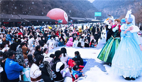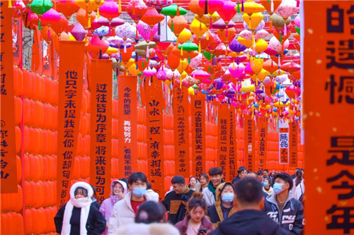 假日期間,景區(qū)內(nèi)新年氛圍熱烈。多彩的燈籠長(zhǎng)廊、熱鬧的民俗表演,美食小吃、國(guó)潮市集……深受游客們的喜愛。正月十四、十五、十六,景區(qū)還將開展猜燈謎、烘旺火、送發(fā)糕、萬(wàn)人元宵宴等豐富的節(jié)慶活動(dòng),歡迎廣大游客來(lái)云臺(tái)山一起紅紅火火鬧元宵!