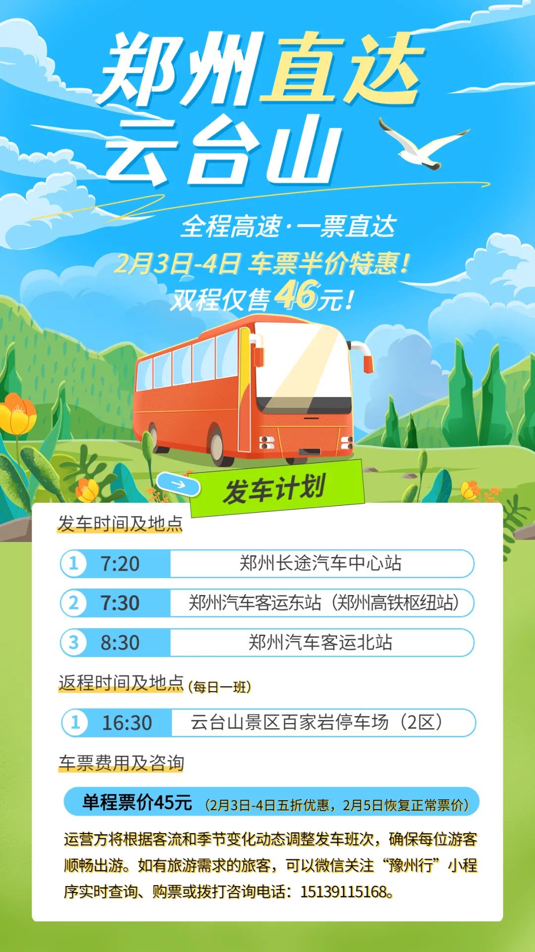 2月3日,鄭州——云臺(tái)山旅游直通車正式開通!早上7:20首班直通車由鄭州長(zhǎng)途汽車中心站發(fā)出,途徑鄭州汽車客運(yùn)東站、鄭州汽車客運(yùn)北站,直達(dá)云臺(tái)山百家?guī)r停車場(chǎng),有效解決游客直達(dá)景區(qū)“最后一公里”問(wèn)題。