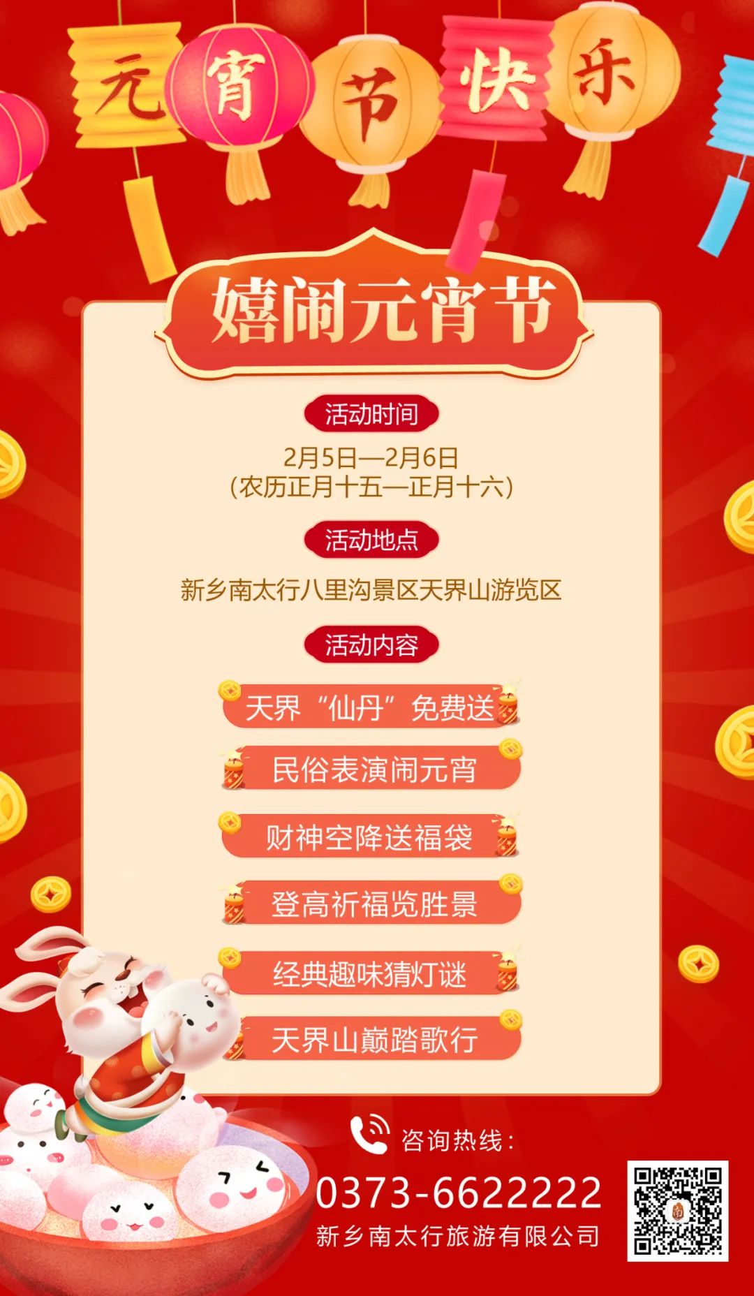 2月5日是正月十五元宵節(jié)。新鄉(xiāng)南太行天界山游覽區(qū),為大家準(zhǔn)備了熱氣騰騰的湯圓,還有充滿(mǎn)愛(ài)的紅包,有愛(ài)的地方就是團(tuán)圓。