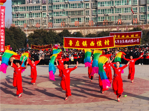 在震天的鑼鼓聲中,魯莊鎮(zhèn)2023年新春文藝匯演正式拉開帷幕。記者在現(xiàn)場看到,魯莊鎮(zhèn)各個村的演出隊伍一大早就在文化廣場做準備,隨著一個個精彩節(jié)目輪番上演,十里八村來看演出的觀眾里三層、外三層,把現(xiàn)場圍了個水泄不通。77歲的張育卿看得饒有興致,記者采訪時,張育卿告訴記者,自己老家是魯莊鎮(zhèn)安頭村的,這次特意帶著一大家人從鄭州回來看演出。