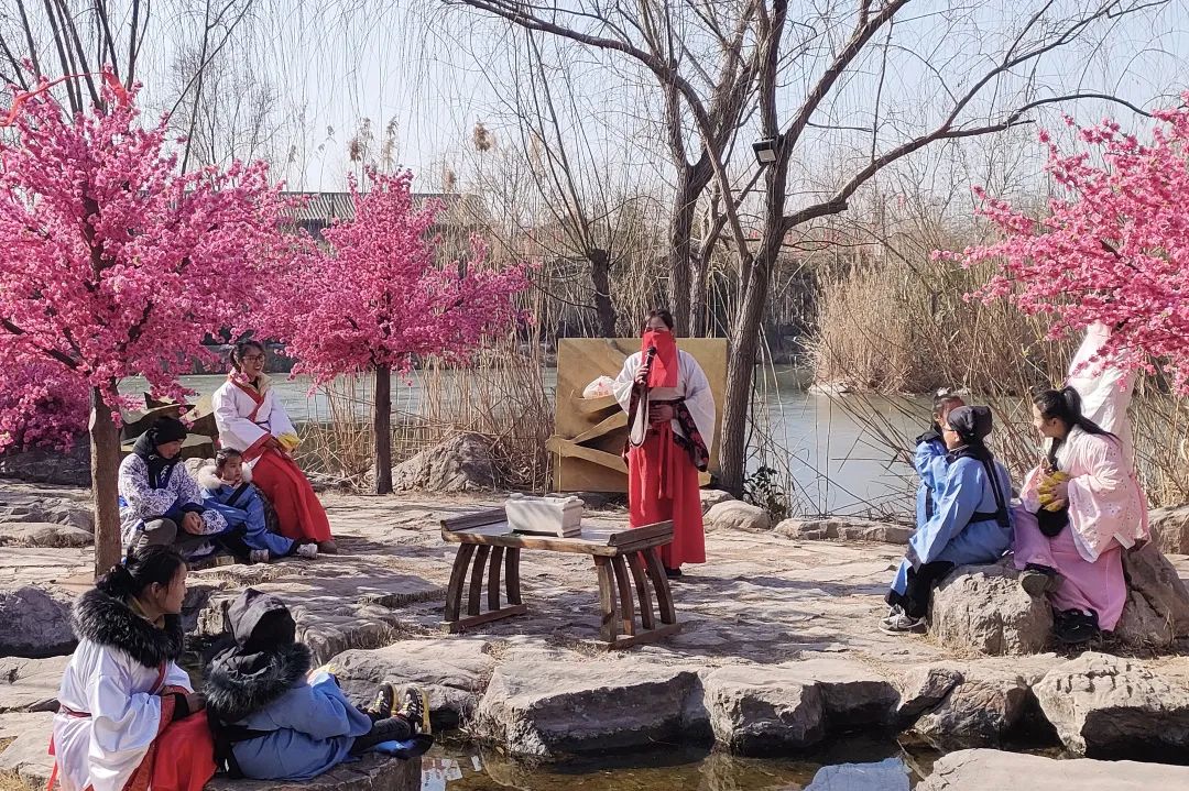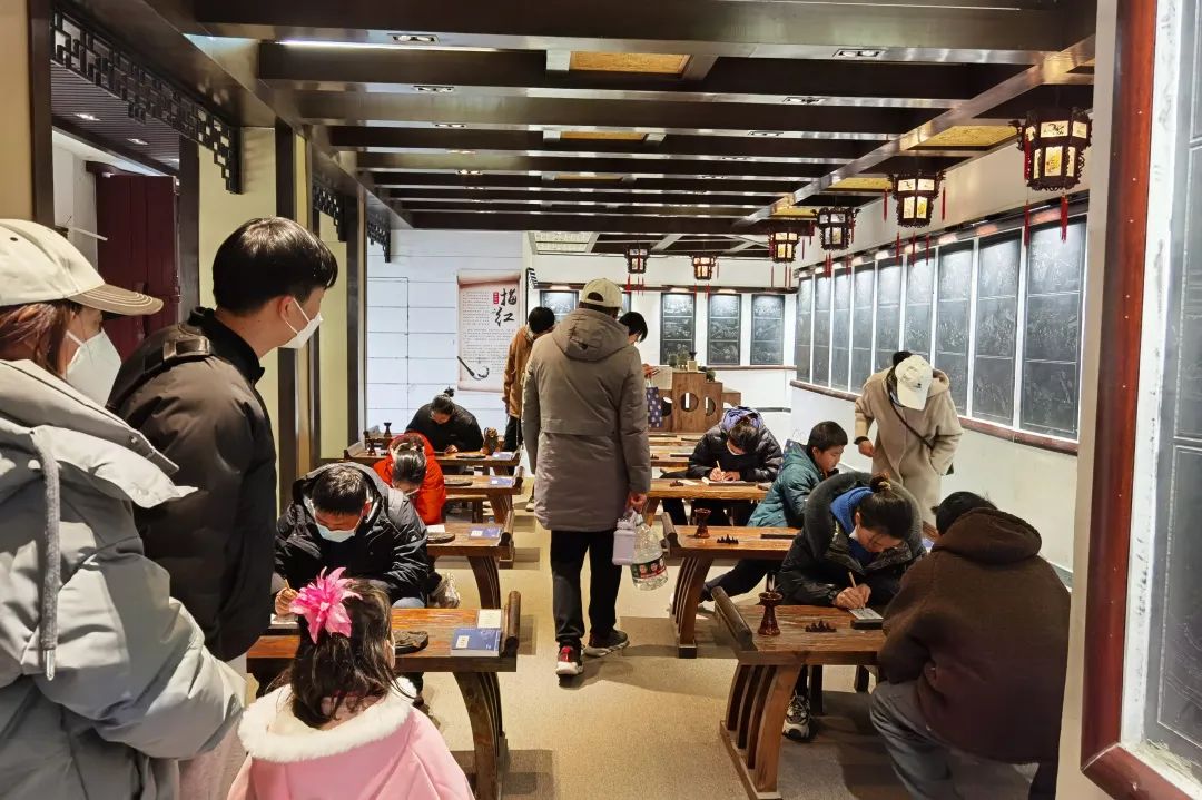 廟會(huì)期間,除了音樂演藝和書畫絕活,翰園碑林對(duì)文化活動(dòng)也做了相應(yīng)的提升,互動(dòng)文化體驗(yàn)活動(dòng)寓教于樂,曲水流觴、國(guó)學(xué)禮儀和論語(yǔ)描紅等文化活動(dòng),不管從服裝還是氛圍,都增強(qiáng)了游客的沉浸性體驗(yàn)效果,讓游客們可以身臨其境的感受文化,來(lái)一場(chǎng)穿越之旅。
