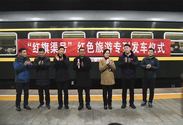 “劈開太行山,漳河穿山來。自力更生創(chuàng)奇跡,高舉紅旗永向前……”2月11日,由河南省文化和旅游廳、中國鐵路鄭州局集團公司共同組織的紅色主題教育活動首發(fā)團,乘坐“紅旗渠號”紅色旅游專列K8008次從鄭州站正式出發(fā),駛向紅旗渠站。