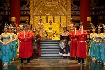 華服換裝,搖身一變穿越千年,明堂大殿拜見“武皇”,重回千年前女皇武則天宴饗群臣、舉行神宮大樂舞之場(chǎng)景。