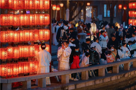 前些日子,抖音知名國風(fēng)達(dá)人“四月”來到隋唐洛陽城九洲池,擔(dān)任隋唐洛陽城星推官,與游客共慶神都上元節(jié),沉浸式體驗(yàn)唐代上元節(jié)的熱鬧恢弘。