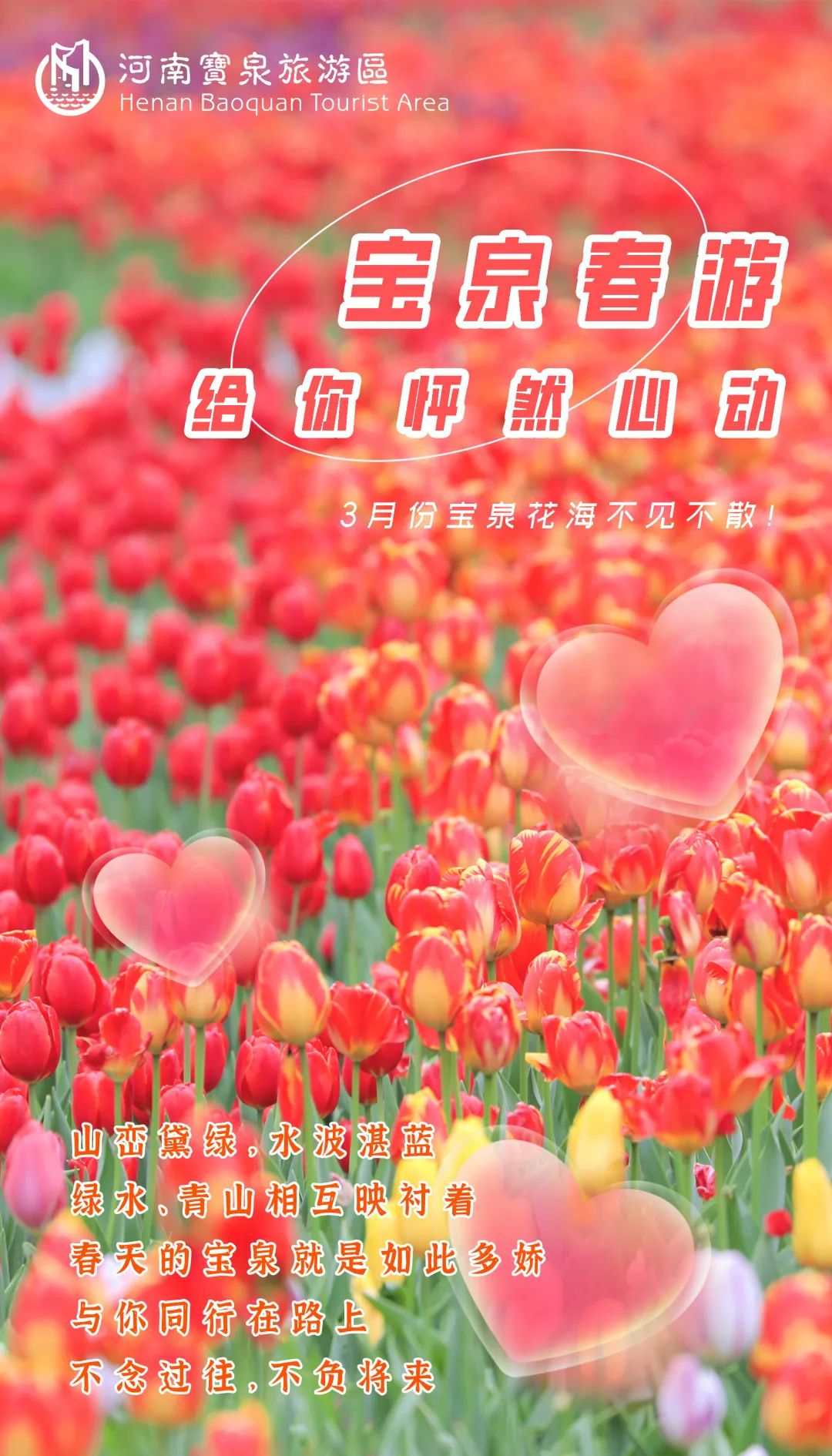 寶泉郁金香3月份就要來啦,每年郁金香綻放都會吸引年輕情侶打卡,今年千萬別錯過哦,場地升級,沉浸式賞花即將來襲!"情人節(jié),許下去看寶泉花海的諾言"。