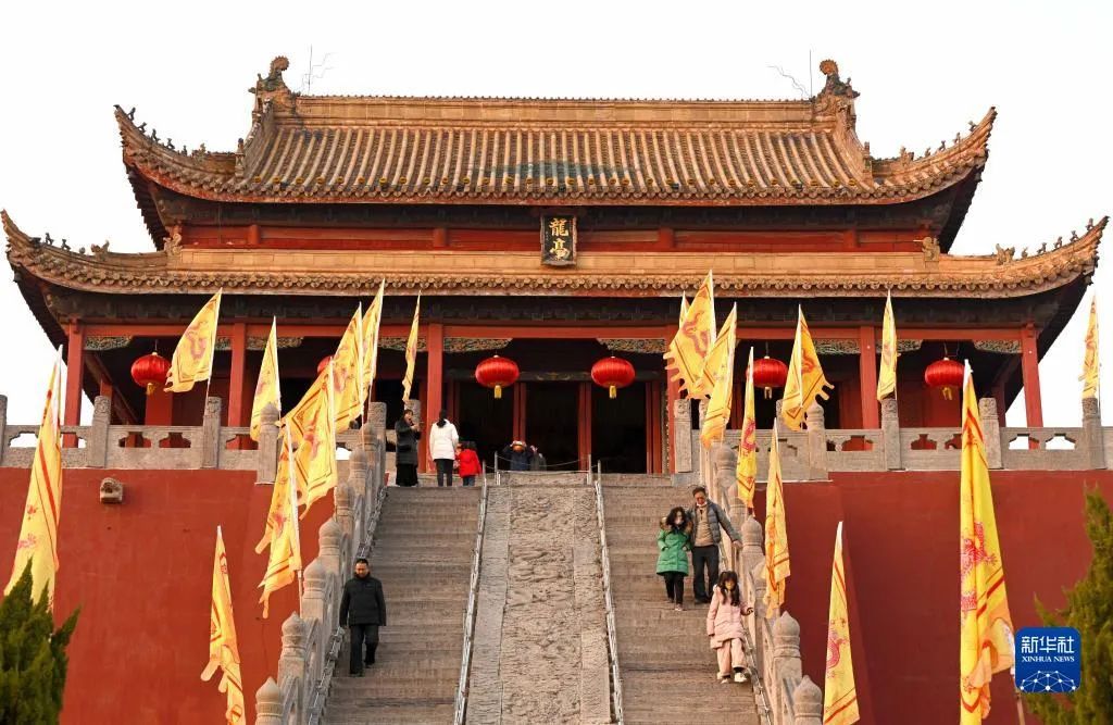 游客在開封龍亭公園內(nèi)游玩(2月15日攝)。