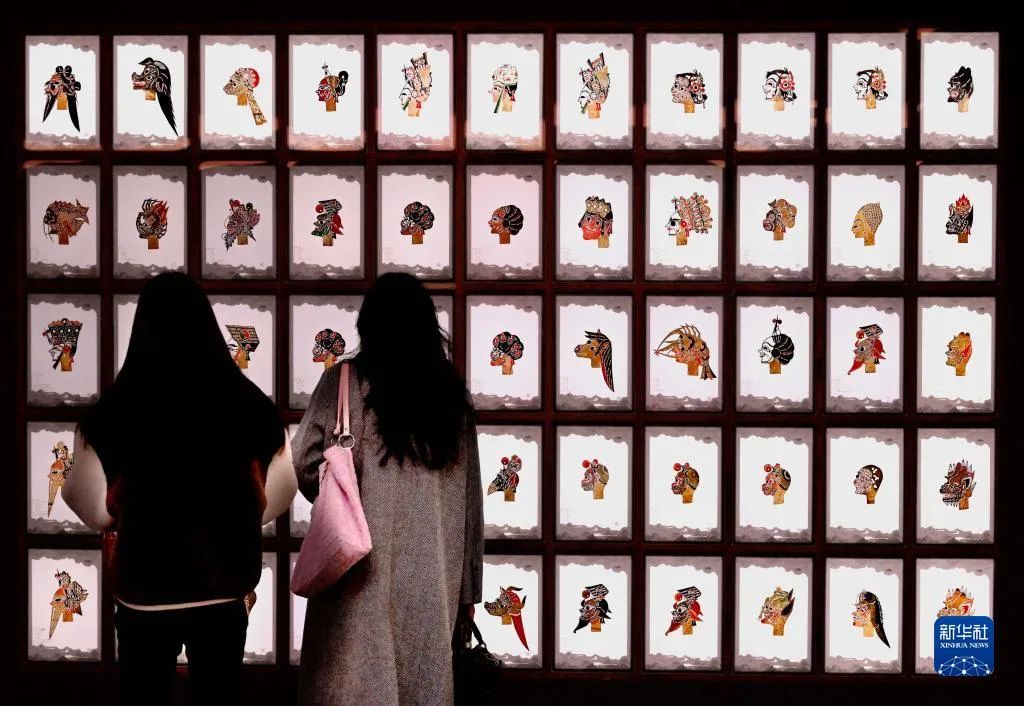 游客在開封清明上河園景區(qū)內(nèi)觀看展示的皮影(2月14日攝)。