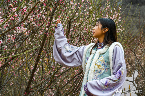 漫步其中,偶見身著古代漢服的佳人結(jié)伴賞花,這一幕幕仿佛讓人穿越千年。全身心徜徉在花海間,呼吸著梅花的芬芳,欣賞著繁花似錦,猶如畫中游。