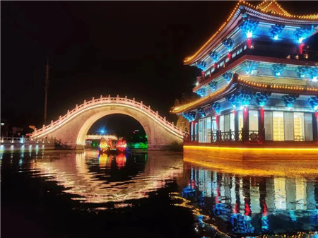 立春過(guò)后,天氣漸漸變得暖和了,漫步御河,燈光照耀,御河兩旁的夜景更是迷人。
