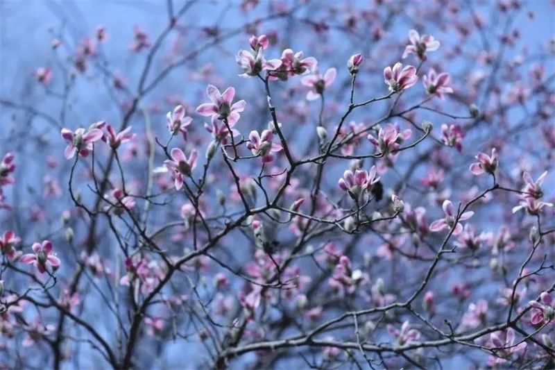 又是辛夷花開季,平頂山市魯山縣團城鄉(xiāng)十萬株辛夷花相繼綻放,一朵朵、一串串,有紅的、紫的、白的,分外妖嬈。