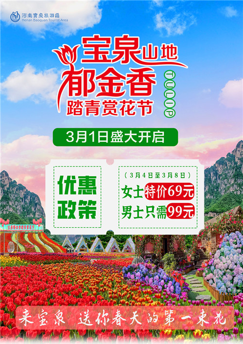 日漸回暖的氣溫,枝頭探出的新綠,在春光和煦的日子里當(dāng)然要來(lái)寶泉,踏青賞花看百萬(wàn)郁金香花海!