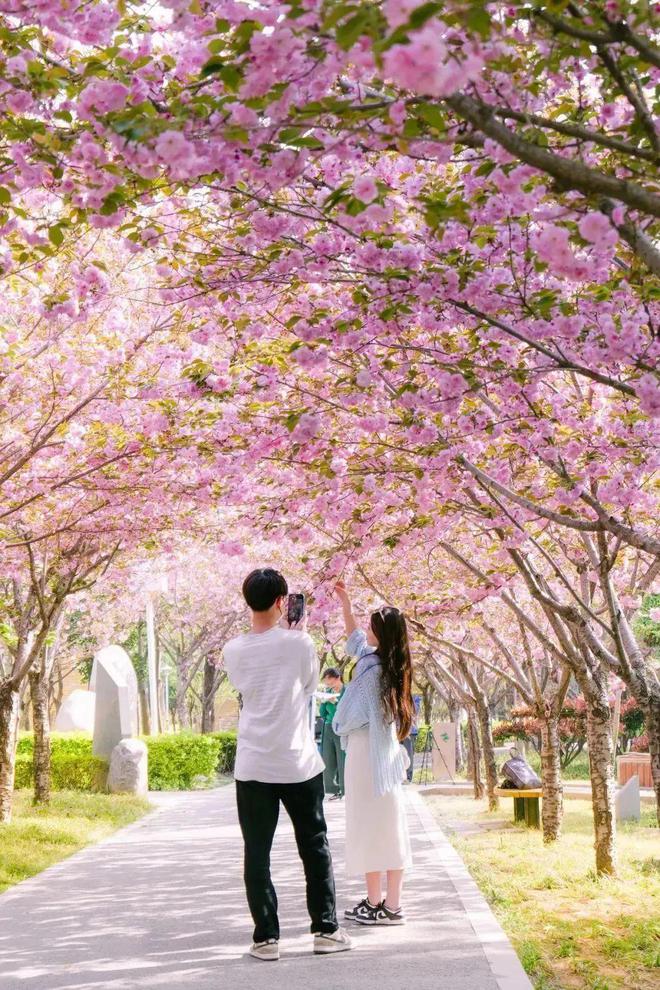 每年3-4月份,鄭州植物園都有千余株櫻花盛開時,遠遠望去一片粉紅色,色調(diào)充滿浪漫的氣息,難怪成了每年拍婚紗照的熱門之地。