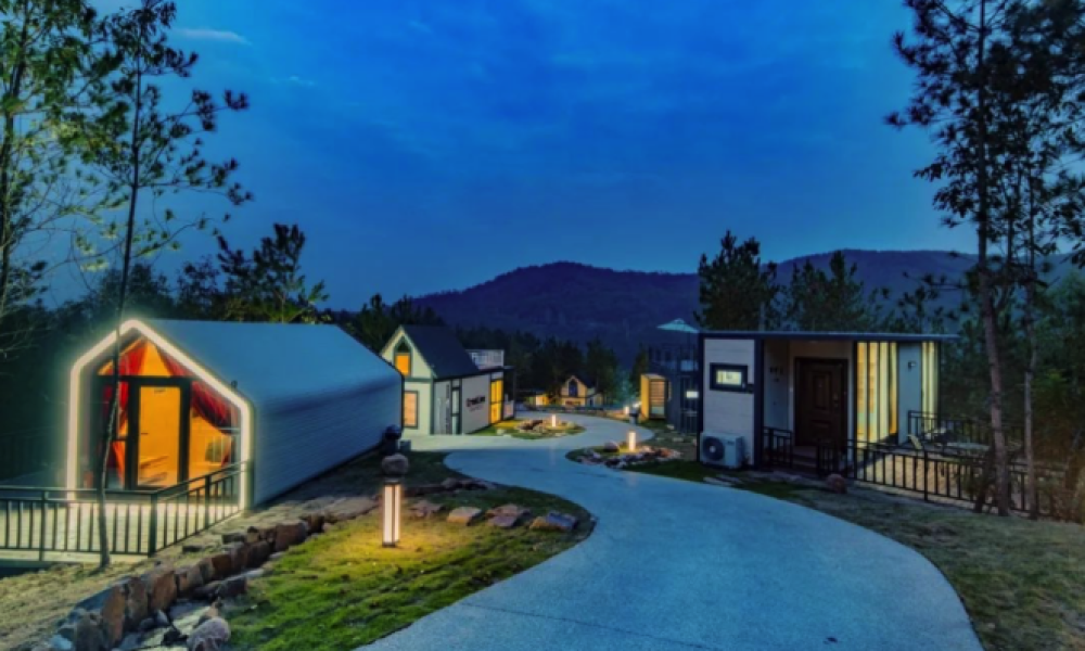 外觀是三角拱形狀,整體是木質(zhì)結(jié)構(gòu),屋體外層還鋪設(shè)了茅草,修葺了小屋專(zhuān)屬的步道,別出心裁,與環(huán)境融為一體,云上伴山的天然、安靜、野趣非常適合家庭出游,撫慰你在城市生活的枯躁。