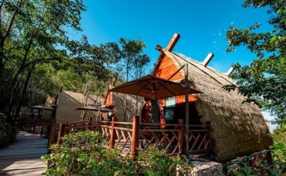 東南亞風(fēng)格木屋茅草頂,獨(dú)立院落,竹林山野中,仿佛伸手就能抓住生活,分分鐘開(kāi)啟野奢度假模式。住戶(hù)可以在原鄉(xiāng)山宿中擁抱自己的生活,做一個(gè)灑脫的人,垂釣觀景,煮水烹茶,體驗(yàn)幽深清凈,令人流連忘返。