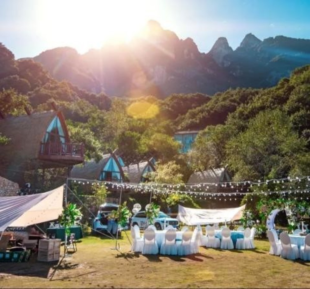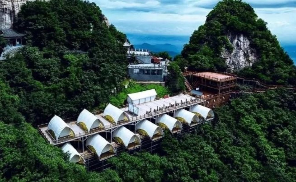 聚云谷野奢帳篷酒店立于五朵山山頂游覽區(qū)域,海拔1500M,年平均溫度15攝氏度,森林茂密,云霧翻騰。10座野奢帳篷酒店,靜靜矗立其中,潔白的外觀,猶如遺落人間的精靈。潔白的帳篷,如曼妙柔軟的白云,在五朵山上酷炫登場(chǎng),山頂之處,是恰到好處的高度和景致,這個(gè)地理優(yōu)勢(shì)是其他民宿所不可比擬的。
