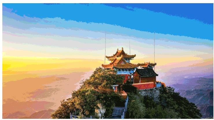 穩(wěn)步慢行,登上平臺(tái)到達(dá)圣朵古色古香的金頂,海拔1668米,使你倍感“千溝萬(wàn)壑皆身下,千山萬(wàn)峰獨(dú)我高”之覺(jué)。秀麗的山峰加上精致的宮殿給人一種在天上生活的感覺(jué),圍著金殿轉(zhuǎn)一圈,群山峰巒,如畫(huà)美景盡收眼底。