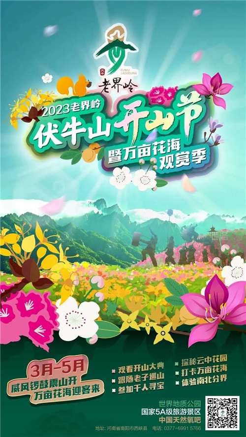 驚雷喚春色,大地萬物生,沉寂一個(gè)冬季的老界嶺已萬物復(fù)蘇。2023老界嶺“伏牛山開山節(jié)”暨萬畝花海觀賞季活動,將于3月11日精彩亮相!屆時(shí)將有開山大典、非遺展演、千人尋寶等豐富多彩的慶;顒,現(xiàn)誠邀四海賓朋共賞開山盛典。