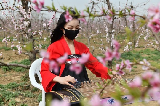 第一屆蒲城桃花節(jié)開幕式古箏演奏 朱江淼 攝