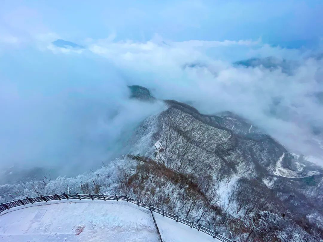 3月16日,云臺山迎來三月桃花雪 ,紛紛揚揚的大雪飄落而至 ,把云臺山裝扮成一幅詩意無限的水墨畫卷。