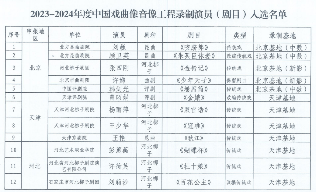 近日,文化和旅游部藝術(shù)司公布2023-2024年度中國(guó)戲曲像音像工程錄制演員(劇目)入選名單,全國(guó)共有102部劇目入選,其中,河南有6部劇目入選。