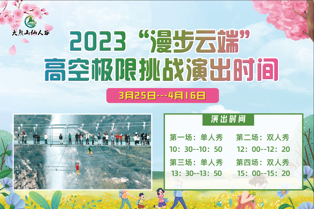 3月25日--4月16日,大熊山仙人谷景區(qū)百花園千畝桃花和櫻花陸續(xù)盛開,漫步在花花世界,與微風(fēng)相擁,讓您真正的感受大自然的饋贈(zèng)與美好。