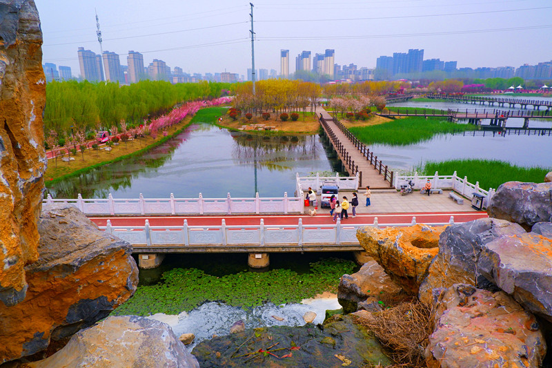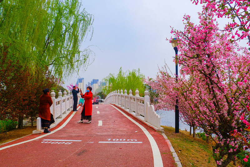 春回大地,萬(wàn)物復(fù)蘇。河南省漯河市臨潁縣桂湖五彩森林公園成為人們踏青賞花好去處。