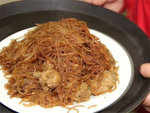洛寧蒸肉,由來已久。洛寧蒸肉由豬肉片、大蔥、粉條、面醬、調(diào)料、面粉攪拌,籠蒸而成。即是節(jié)日盛饌,也是待客佳品。洛寧蒸肉,食之香而不膩,余味無窮。多為家做自食,為洛寧乃至豫西地方名吃之一。