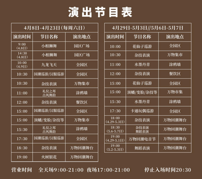 聆聽歷史的聲音、品嘗封丘美食、觀看非遺表演,進一步打響封丘縣“全國休閑農(nóng)業(yè)與鄉(xiāng)村旅游示范縣”品牌,擦亮封丘黃河文化名片底色,以花漾國潮為主旨在黃河之濱呈現(xiàn)一系列自然風(fēng)光之美、萬物回潮之興、展現(xiàn)封丘文化特色、結(jié)合園內(nèi)布陳的國潮電音節(jié)、沉浸式夜游體驗等為主題的觀光旅游季活動。