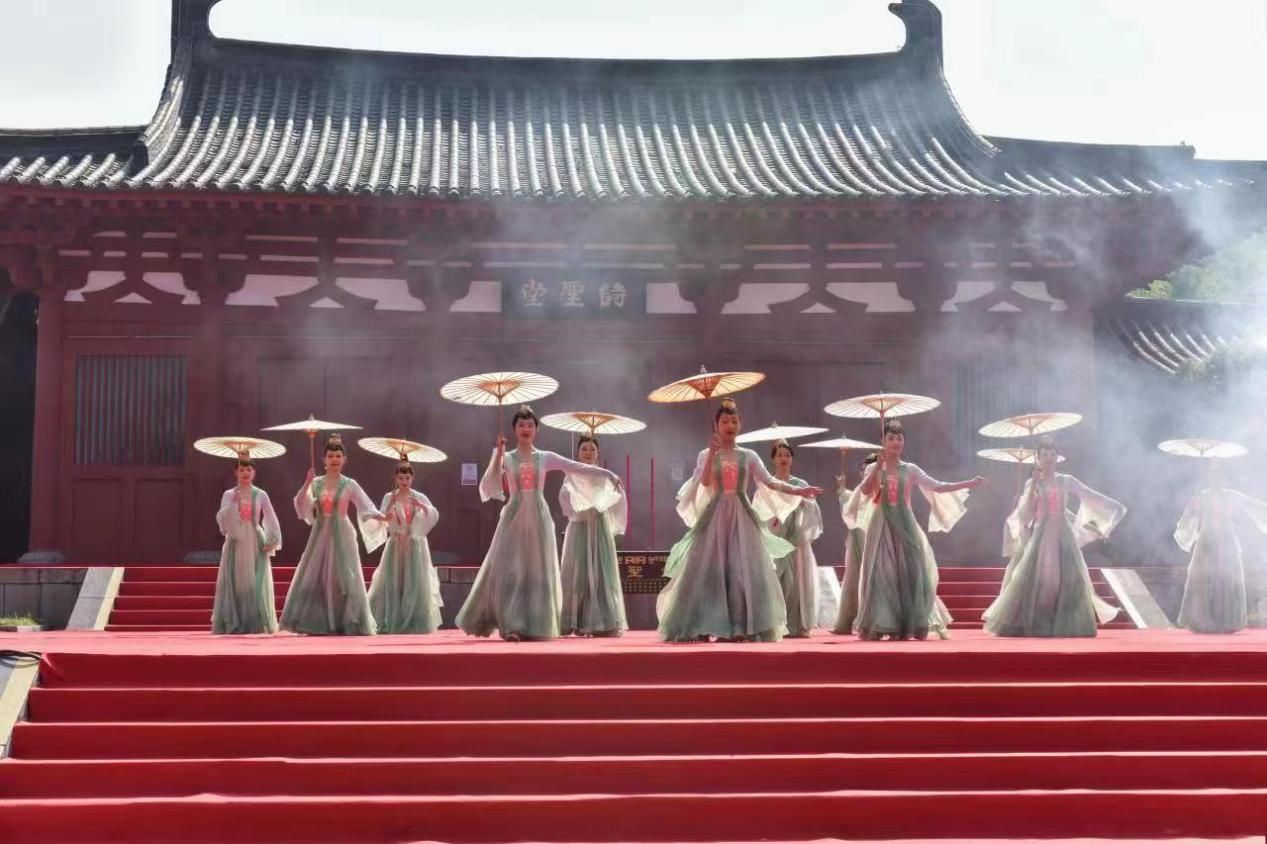當(dāng)天上午,杜甫故里莊嚴(yán)肅穆、大氣恢弘。9時(shí)許,領(lǐng)導(dǎo)嘉賓們經(jīng)詩(shī)圣大道、過(guò)詩(shī)圣橋,緩步來(lái)到詩(shī)圣堂。