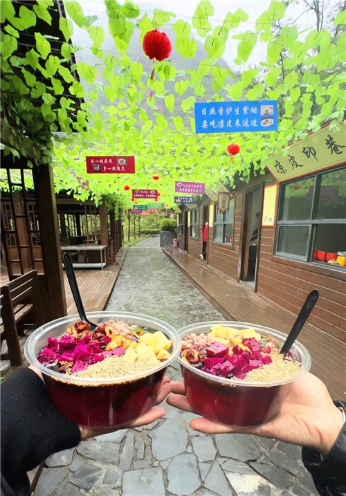 西門入園---網(wǎng)紅秋千--七彩滑道--飛云天橋(觀看演出)--玻璃滑道---喊泉--水上闖關(guān)--美食廣場---情人谷--熊孩子樂園---仙人洞---東門--原路返回,也可以乘坐外線觀光車到西門(自費20元/位)。