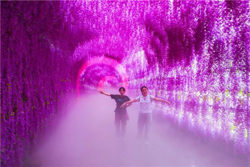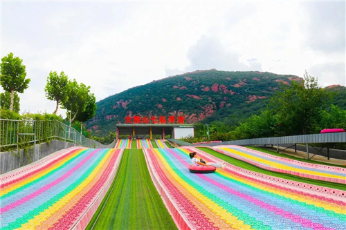 穿過紫藤長廊,乘坐內(nèi)線觀光車,抵達這個超長的彩虹滑道,除了老人和太小的孩子,一定要挑戰(zhàn)一下,這里還有一個網(wǎng)紅秋千可以玩一玩。