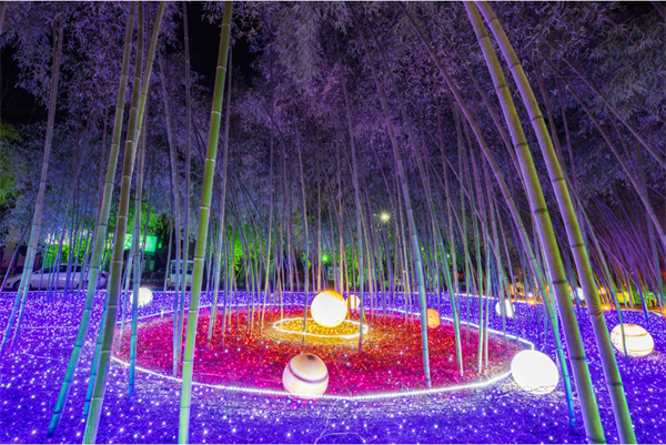 在竹林打造星空宇宙燈光秀,一竹一葉,移步異景,夢(mèng)幻時(shí)空的重合,觸手可及的流光星辰,不斷拓寬夜游體驗(yàn)空間。