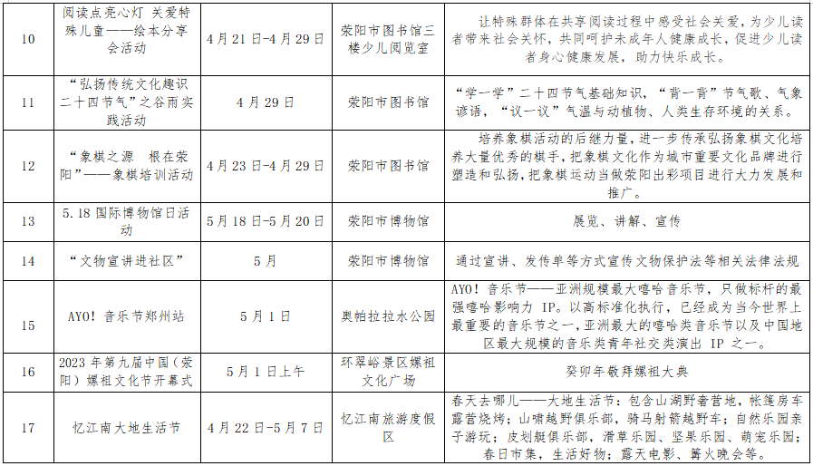 2023年五一假期文旅活動(dòng)、節(jié)會(huì)統(tǒng)計(jì)表