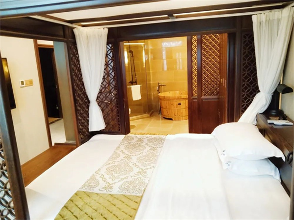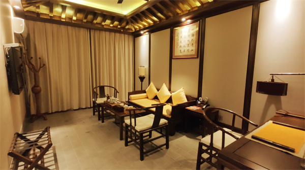 房間內(nèi)裝飾素雅不缺格調(diào),簡樸不失韻味。古典實木家具配以中式字畫,竹、木、瓦、梁的元素隨處可見,無處不散發(fā)著文化的氣息和歲月的光芒。