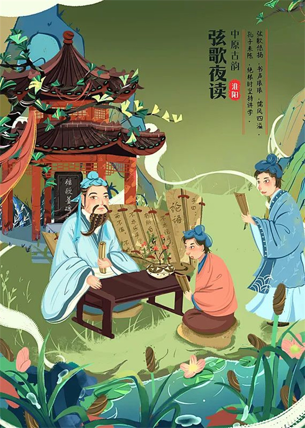 弦歌亭、孔子、夜讀。