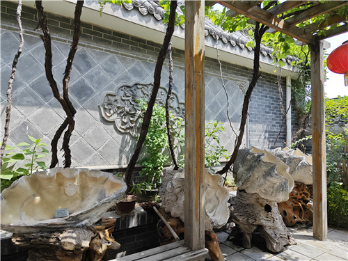 博物館總建筑面積1600平方米,整體采用仿古四合院建筑風(fēng)格,由三個展院、兩個過廳和十個展廳組成。漫步其中,一步一景,到處是假山怪石,花壇盆景。點綴其間的硨磲標(biāo)本,更為古樸莊重的建筑增加了別樣的海洋氣息。