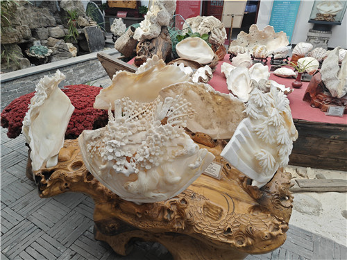 在這座小巧精致的硨磲博物館中,陳列展示有硨磲標(biāo)本、貝殼化石、佛教文物、民間用品以及現(xiàn)代工藝品,種類繁多的器物讓人眼花繚亂,其中也不乏讓人嘆為觀止的巧奪天工之作。