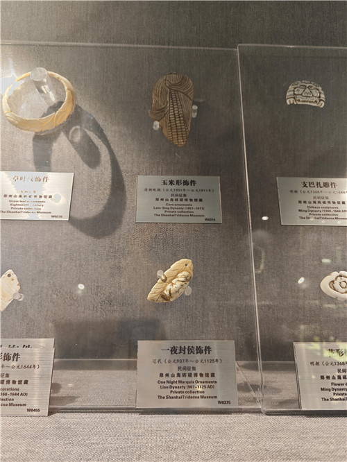 在實用器具與飾品廳,從跨越了不同時代的硨磲覆面、玉碗酒杯、朝珠、鼻煙壺、望遠(yuǎn)鏡、名片盒,到“工必有意”的各類擺件,再到手鐲、項鏈等各種配飾,璀璨奪目的硨磲器物,無不體現(xiàn)出古人對硨磲的喜愛,也讓觀眾對不同時期的硨磲工藝水平和時代審美特征有了清晰的認(rèn)識。
