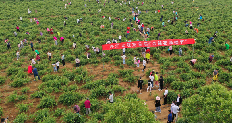 今年金銀花開時(shí),丹江大觀苑金銀花基地特邀游客前來(lái)體驗(yàn)康養(yǎng)旅游。活動(dòng)現(xiàn)場(chǎng),主持人為游客科普金銀花知識(shí),并進(jìn)行有獎(jiǎng)問答,游客們?cè)跉g聲笑語(yǔ)中學(xué)到了真知識(shí)。“以前只見過(guò)成品金銀花,今天才知道原來(lái)金銀花是咋長(zhǎng),咋摘的,真長(zhǎng)見識(shí)!”王女士邊說(shuō)邊摘金銀花。