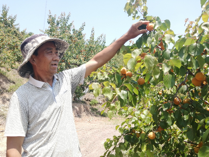 果農(nóng)李國定查看杏果 趙軍偉 攝