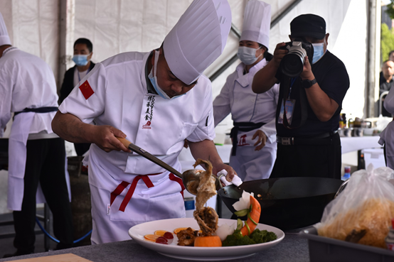 精彩的文藝暖場表演后,淅川縣第三屆美食廚藝大賽正式開賽。比賽現(xiàn)場,整齊的灶臺一字排開,大廚們紛紛拿出看家本領(lǐng),大顯身手,地道的食材,嫻熟的刀工,配合煎、炒、煮、蒸、炸等方式,一道道造型出眾、各具特色的佳肴呈現(xiàn)在人們眼前,美食的香氣四處飄蕩,精致的擺盤讓人垂涎欲滴,引得現(xiàn)場評委和觀眾紛紛拍照、點(diǎn)贊。