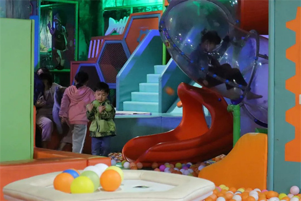 親子樂園內(nèi),孩子們開心的積極參與到各種游玩項目中。