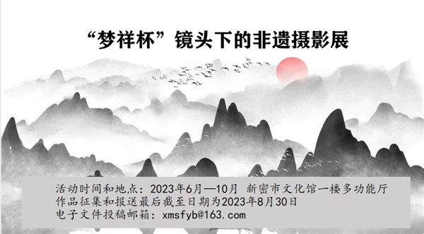 為展示該市非遺項(xiàng)目風(fēng)采,記錄非遺在促進(jìn)中華文明可持續(xù)發(fā)展進(jìn)程中的積極作用,進(jìn)一步繼承和弘揚(yáng)中華優(yōu)秀傳統(tǒng)文化,更加有效地利用影像資料開展非遺的記錄、保護(hù)工作,舉辦“夢祥杯”鏡頭下的非遺2023新密非物質(zhì)文化遺產(chǎn)攝影展活動。