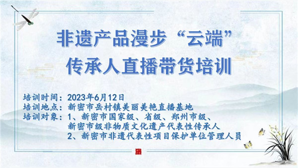 依托美麗美艷直播基地,宣傳新密厚重文化,傳承發(fā)揚(yáng)優(yōu)秀非物質(zhì)文化遺產(chǎn),開展傳承人直播帶貨培訓(xùn),非遺+新興的互聯(lián)網(wǎng)業(yè)態(tài),讓非遺產(chǎn)品借助直播電商走出新密,走向全國。