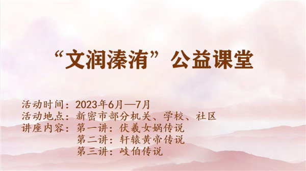 為弘揚(yáng)和傳承本地區(qū)中華優(yōu)秀傳統(tǒng)文化,講好非遺新密故事,組織伏羲女媧傳說、軒轅黃帝傳說、岐伯傳說項(xiàng)目走進(jìn)社區(qū)、學(xué)校、機(jī)關(guān)開展公益講座,豐富群眾精神文化生活,激發(fā)社會各界對中華優(yōu)秀傳統(tǒng)文化的認(rèn)知和參與熱情。增強(qiáng)文化認(rèn)同感,構(gòu)建文化自信堅(jiān)實(shí)基礎(chǔ)。